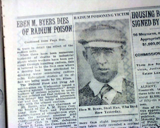 Nel 1932, anno in cui Byers morì dopo due anni di sofferenze, la FDA aprì un’indagine che portò al ritiro dal mercato di Radithor e dei prodotti contenenti radio.