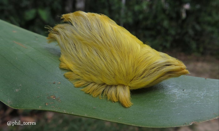 Il Bruco Aspide (Megalopyge opercularis), nonostante il suo aspetto bizzarro e apparentemente innocuo, è infatti dotato di potenti pungiglioni nascosti tra i lunghi peli che ne ricoprono l’intero corpo e il suo veleno è talmente potente da poter causare in un uomo adulto con facilità anche effetti sistemici (da eruzioni cutanee urenti a veri e propri quadri di insufficienza respiratoria), la cui durata può raggiungere anche le 12 ore.