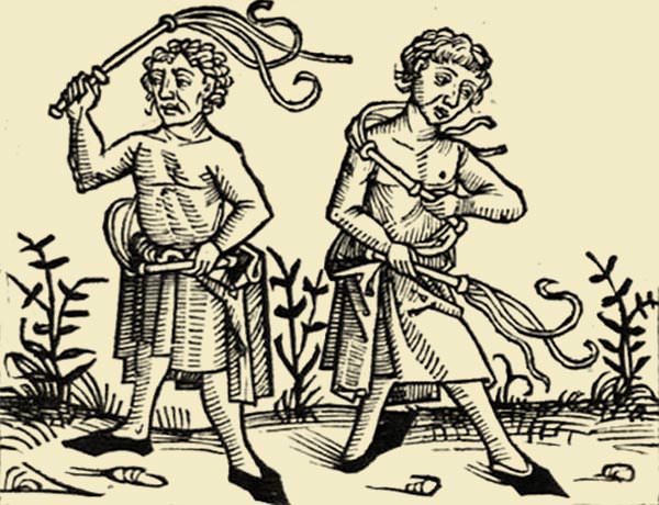 Su questa premessa iniziarono a organizzarsi lunghe processioni dove spesso i partecipanti si percuotevano con fruste per espiare i propri peccati, riportando in auge la pratica della flagellazione (nata nel 1281 con l’eremita francescano Raniero Fasani, che a Perugia fondò la Compagnia dei Disciplinati di Cristo).