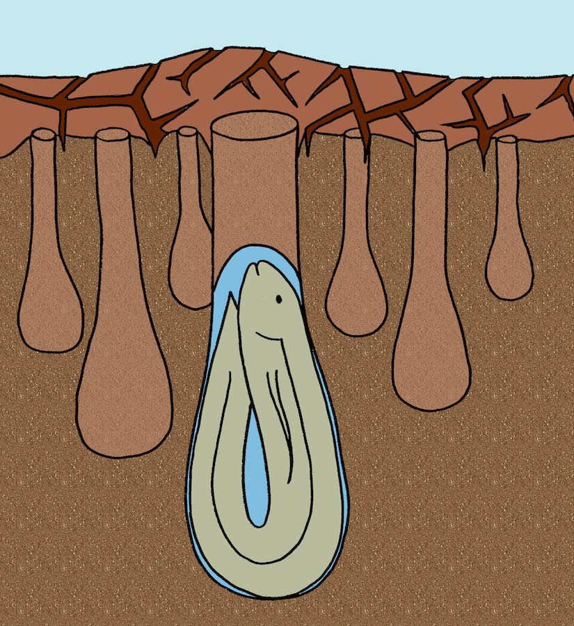 Per riassumere quindi, nei periodi di siccità ci sono dei pesci che si ibernano nel fango.